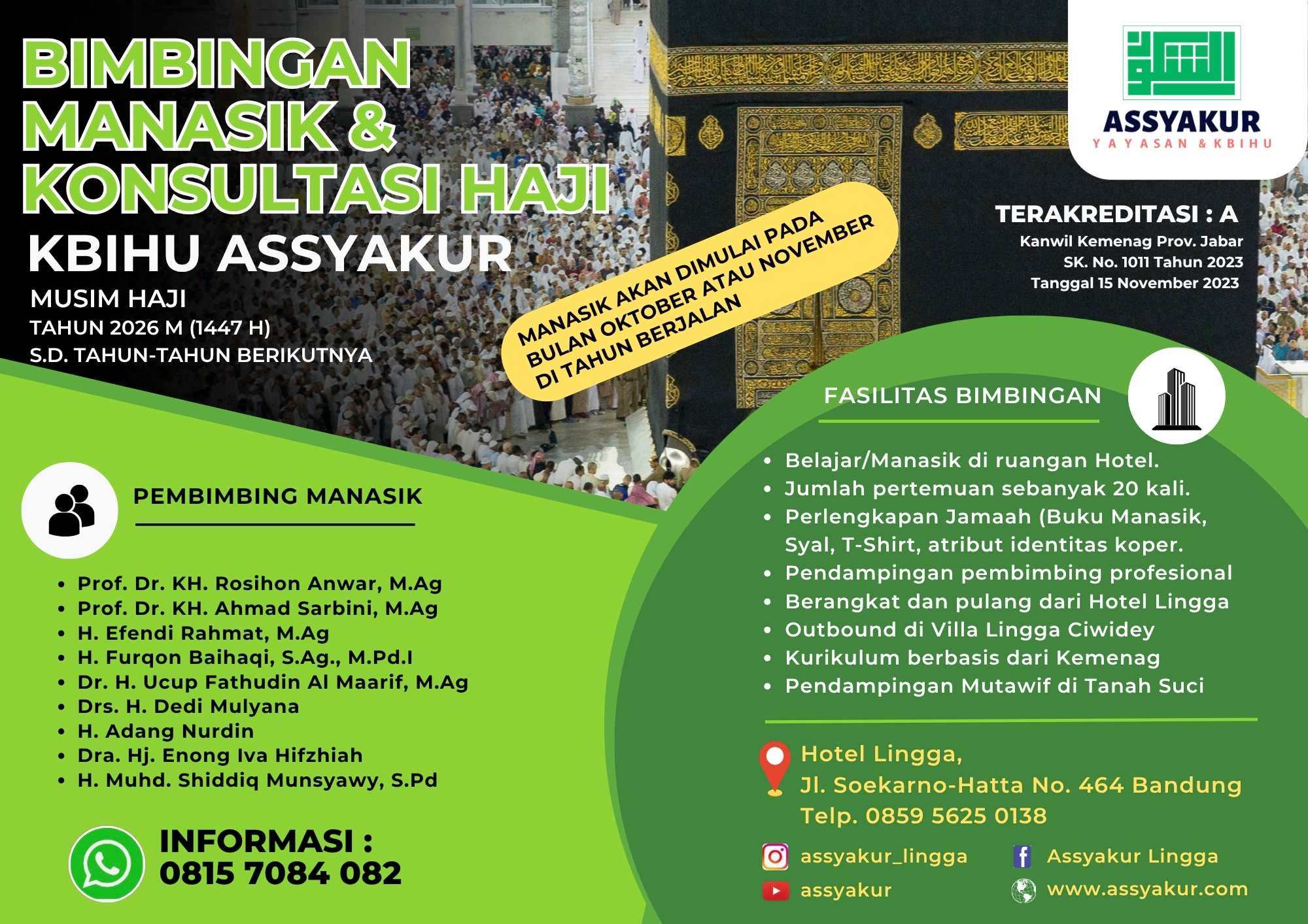 KBIH ASSYAKUR MENERIMA PENDAFTARAN BIMBINGAN MANASIK DAN KONSULTASI IBADAH CALON JAMAAH HAJI UNTUK KEBERANGKATAN TAHUN 2026 M S.D TAHUN-TAHUN BERIKUTNYA...YUUK DAFTARKAN SEGERA...!!