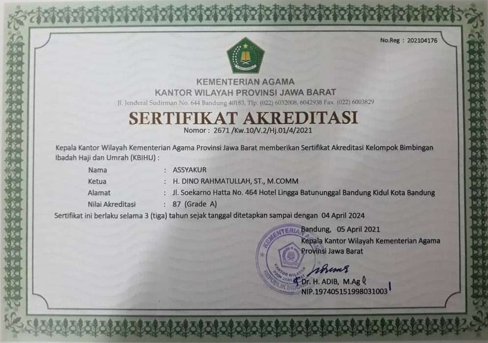 KBIH ASSYAKUR MENERIMA PENDAFTARAN BIMBINGAN MANASIK DAN KONSULTASI IBADAH CALON JAMAAH HAJI UNTUK KEBERANGKATAN TAHUN 2026 M S.D TAHUN-TAHUN BERIKUTNYA...YUUK DAFTARKAN SEGERA...!!